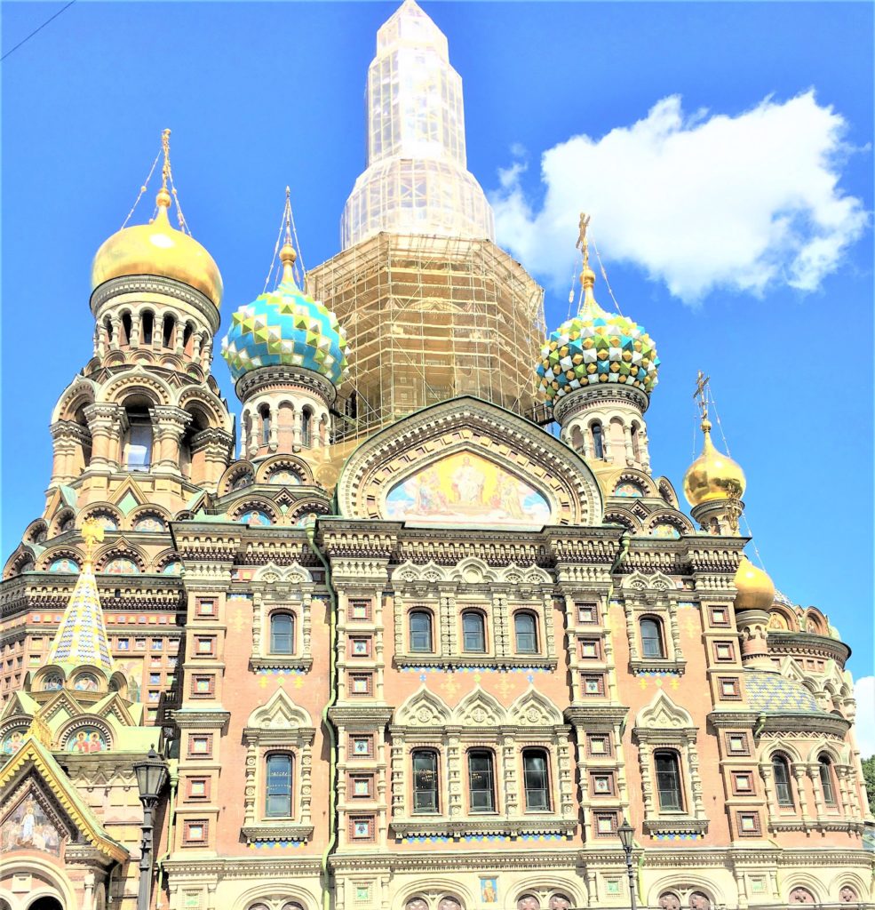 カラフルな玉ねぎ型の塔と外壁に刻まれたモザイク画が美しいロシア教会ですが