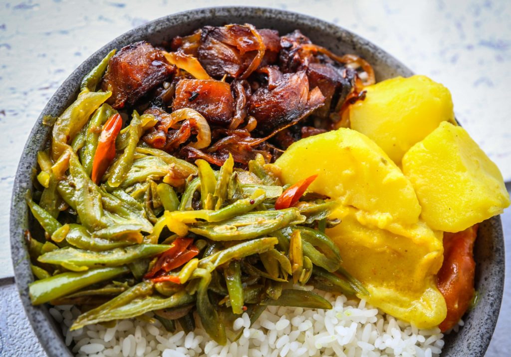 それを右手でゴチャゴチャ混ぜて食べるのが主流だそうです。